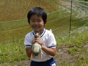 石垣と注ぎ込む水とアイガモ達絵になると思いませんか