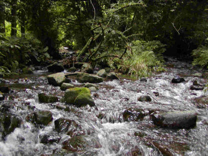| 100mくらい上流の川の様子です。冷たくて、 美味しい水です。上流に人家がないので、 とてもきれいです。 |