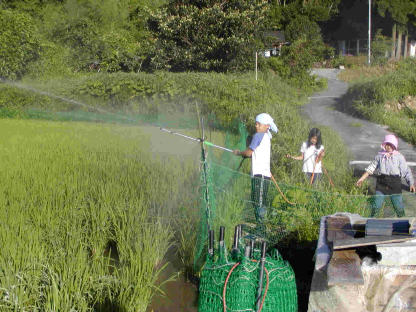 | ステビアを散布中の泰洋くん人畜無害 なので、子どもでも平気です。 |
