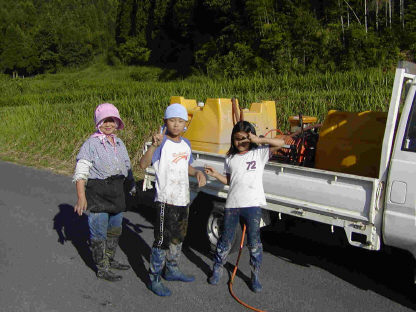 夏休み中は朝早く起きて、おばあちゃんとステビア散布や草刈をしました。 |