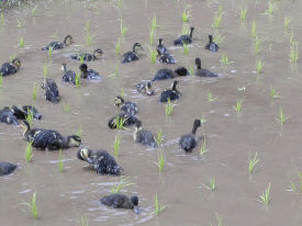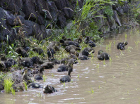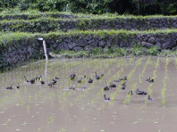 石垣と注ぎ込む水とアイガモ達絵になると思いませんか