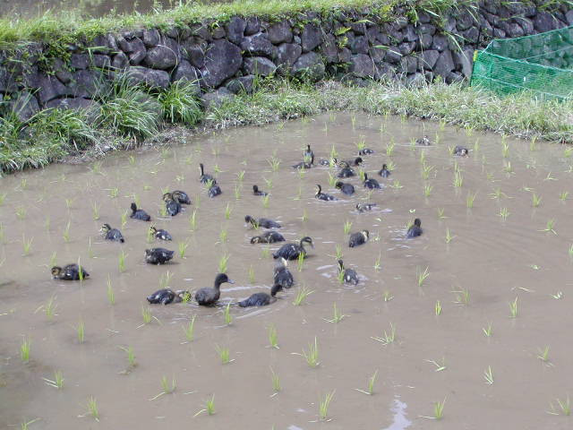 | アイガモと一緒にハイポーズ! | かわいいアイガモ達 草や害虫を食べてくれます。 |