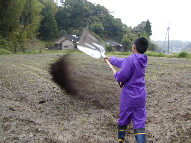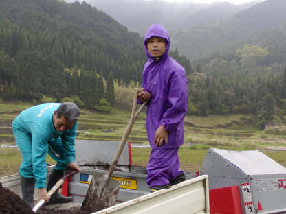 おじいちゃんの手伝いをして反当たり1.5トンの堆肥をふりました。