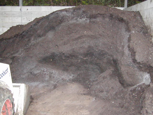 白く見えるのは土着菌が繁殖している所です。匂いも少ないとても良質な堆肥です。